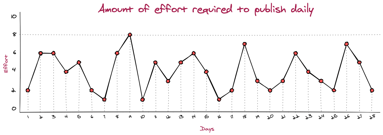 - Harder to publish longer pieces. What seems simple and straightforward when you read it is neither simple nor straightforward when you create it. In fact, the simpler it looks, the more effort it took to make it. The best writing is when a reader can say, "It's simple and obvious; I could have written it myself." Because of this effect, daily publishing habit takes a lot of effort. When focusing on pushing something out every day, longer and more significant articles suffer—articles that need a lot of research, that take time to think through, write, and edit. This is probably the only drawback of daily publishing.